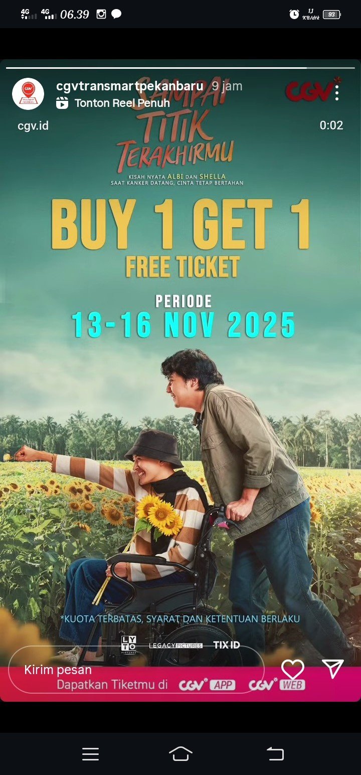 Jadwal film Sampai Titik Terakhirmu di bioskop CGV Transmart Pekanbaru hari ini
