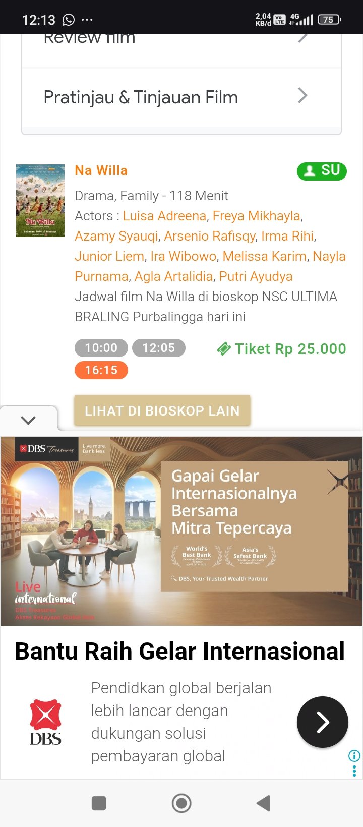 Jadwal film Na Willa di bioskop NSC ULTIMA BRALING Purbalingga hari ini